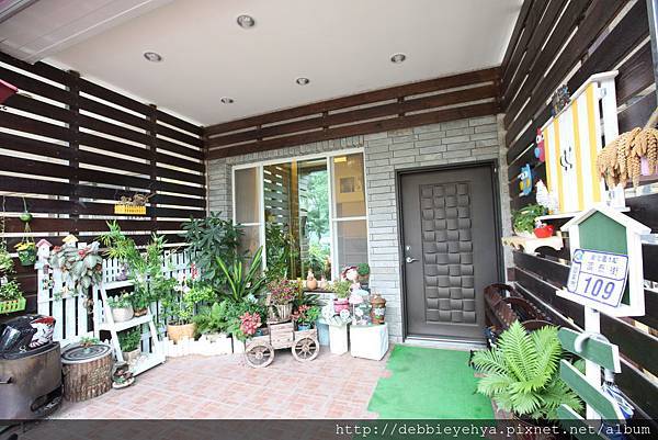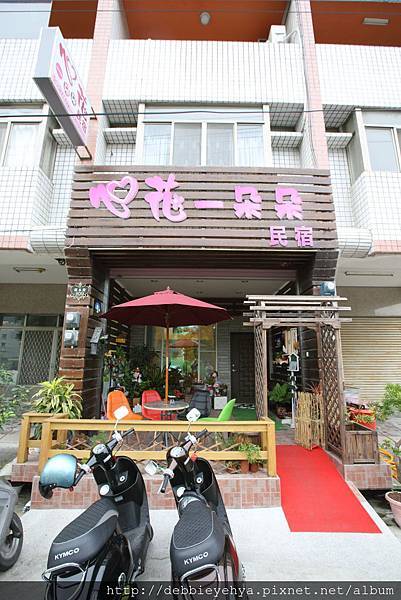 外觀有扛棒就是寫著心花一朵朵民宿,粉紅色,而且1樓外面有小小庭園就是很少女心啊~