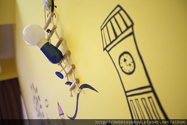 下圖:我好喜歡這燈泡,是個燈泡人在爬階梯~~晚上睡覺前只開這個燈時氣氛也滿好的喔