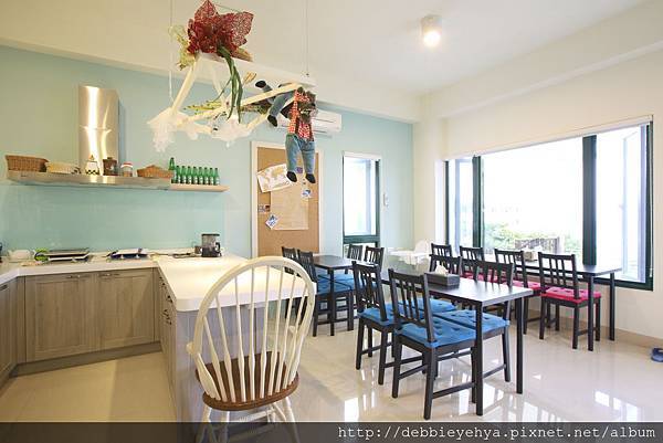 一樓大廳是個開放式的廚房,貼心的是還備有泡麵及熱水可以供應給防客食用