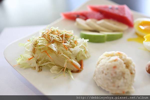 算西式早餐,有沙拉 熱狗 薯泥 溏心蛋 水果 超好喝冰紅茶